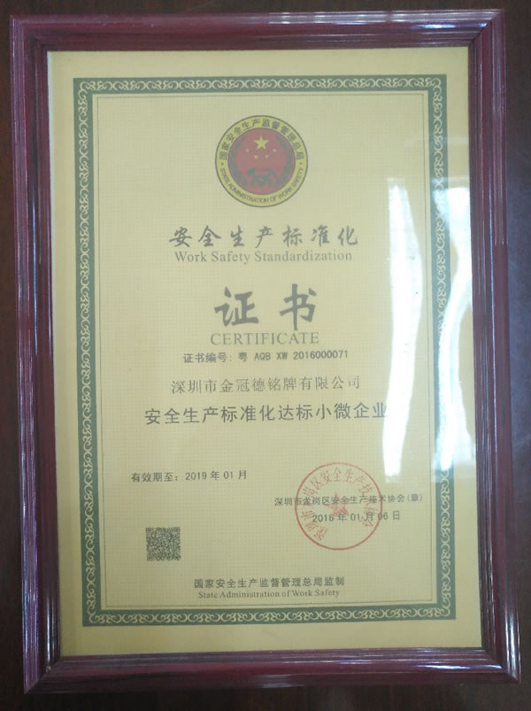 安全生產(chǎn)標(biāo)準(zhǔn)化證書